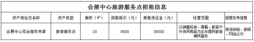 備注:意向承租人對上述情況應(yīng)有充分了解。詳細(xì)招租規(guī)則、合同、承諾函、報價單等招租文件于報名參加時領(lǐng)取。