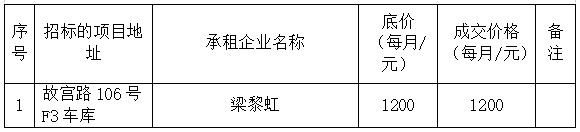 故宮路106號F3車庫房產(chǎn)招租成交公告