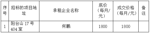 陽臺(tái)山17號(hào)404室房產(chǎn)招租成交公告