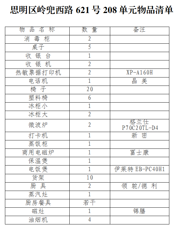 2、物品名稱及數(shù)量:冰柜、消毒柜等一批廢舊物品(詳見(jiàn)附表---208單元物品清單)。