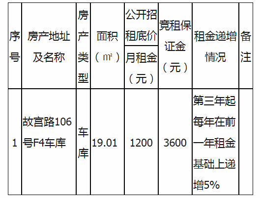 故宮路106F4車庫房產招租情況