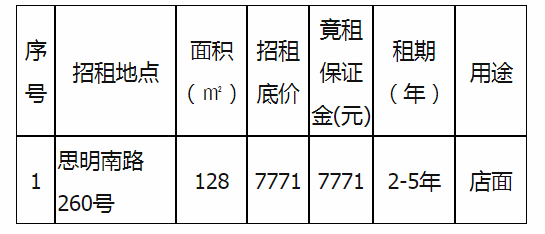 備注:意向承租人對(duì)上述情況應(yīng)有充分了解。詳細(xì)招租規(guī)則、房屋租賃合同樣本、承諾函、報(bào)價(jià)單等招租文件于報(bào)名參加時(shí)領(lǐng)取。