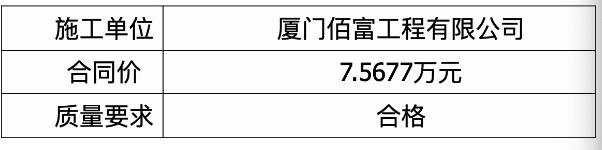 根據(jù)招投標(biāo)管理辦法、思明控股辦[2021]14號(hào)文《采購(gòu)招標(biāo)管理辦法》的相關(guān)規(guī)定,我司委托廈門(mén)佰富工程有限公司實(shí)施嘉蓮商務(wù)中心一期辦公樓8樓公共部分修整工程,現(xiàn)通過(guò)思明控股網(wǎng)站進(jìn)行成交結(jié)果公示,內(nèi)容如下: