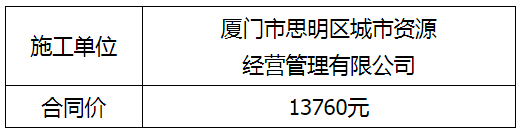 根據(jù)招投標(biāo)管理辦法、思明控股辦[2021]14號(hào)文《采購(gòu)招標(biāo)管理辦法》的相關(guān)規(guī)定,我司位于鼓浪嶼興化路1號(hào)及3號(hào)院內(nèi)的綠化修剪及排險(xiǎn)工程擬委托廈門(mén)市思明區(qū)城市資源經(jīng)營(yíng)管理有限公司實(shí)施,現(xiàn)通過(guò)思明控股網(wǎng)站于2022年1月7日至2022年1月11日進(jìn)行成交結(jié)果公示,內(nèi)容如下: